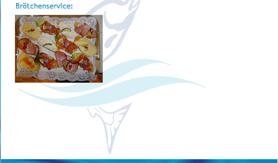 Geschmackvoll garnierte Brötchen, belegt mit Schinken, Käse, gebeizte Lachsforelle, Räucherfischmousse, Räucherfischtartare und sonstigen Köstlichkeiten werden Ihre Party den letzten Schliff verleihen.